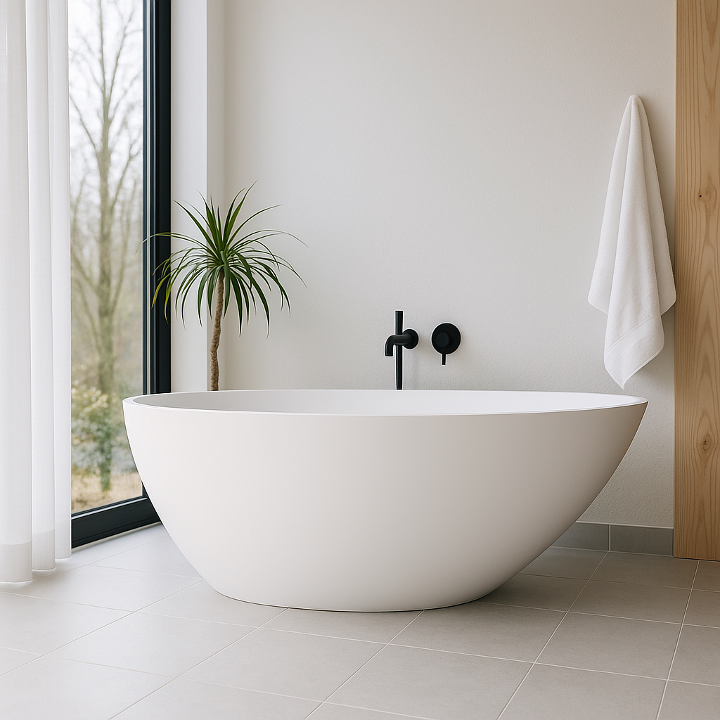 Our shower trays and baths are made in Italy from luxurious Mineralsolid®, a non-porous, ecofriendly, plant-based material with self-cleaning and antibacterial properties. Shower trays are available in 3 on trend finishes and have Class C anti-slip for the highest level of safety. Our beautiful freestanding baths are now available in high quality matt colour finishes and RAL colour matching for coordinated colour in bold bathroom designs.